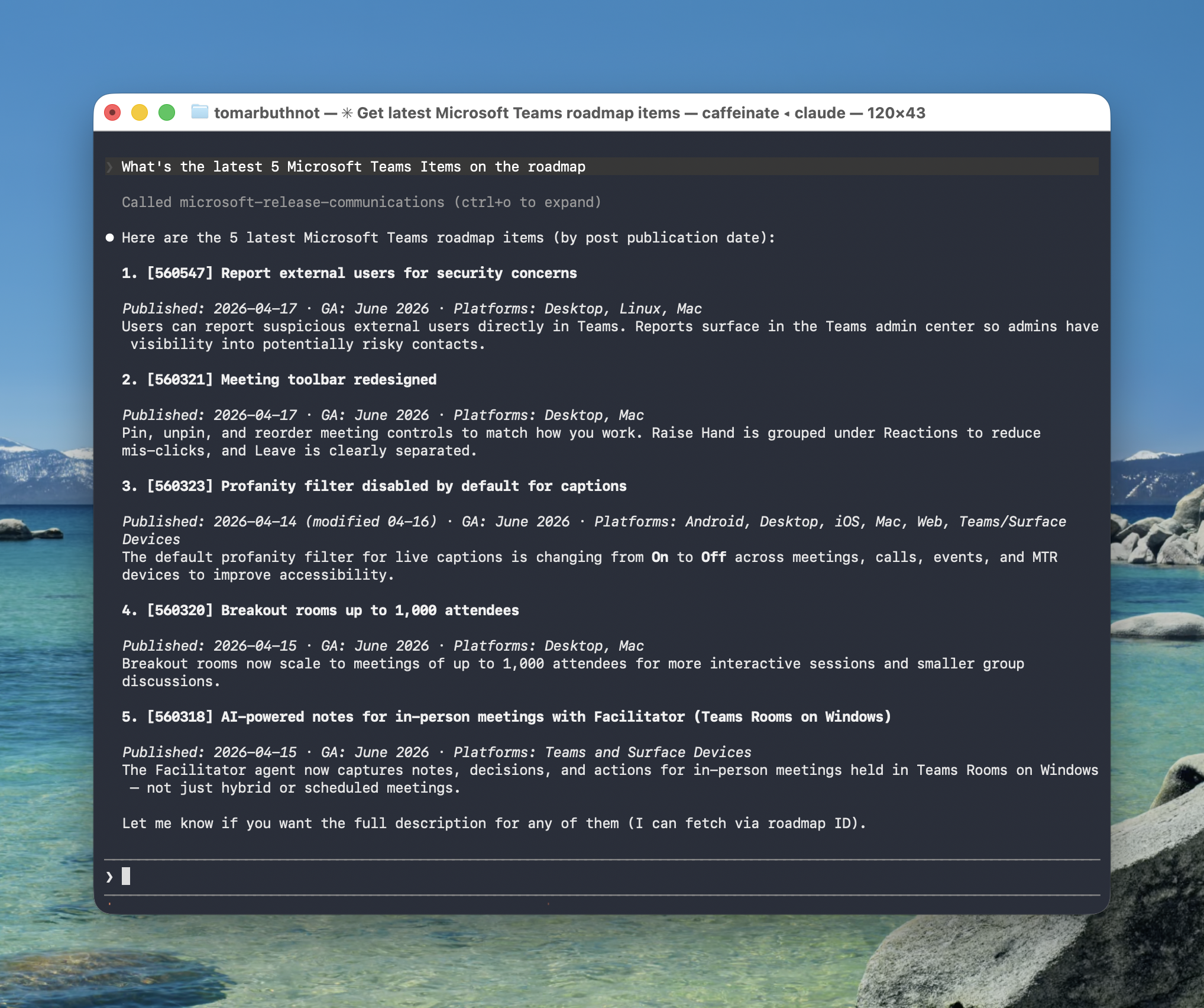 - Inspect the config anytime: claude mcp get microsoft-release-communications